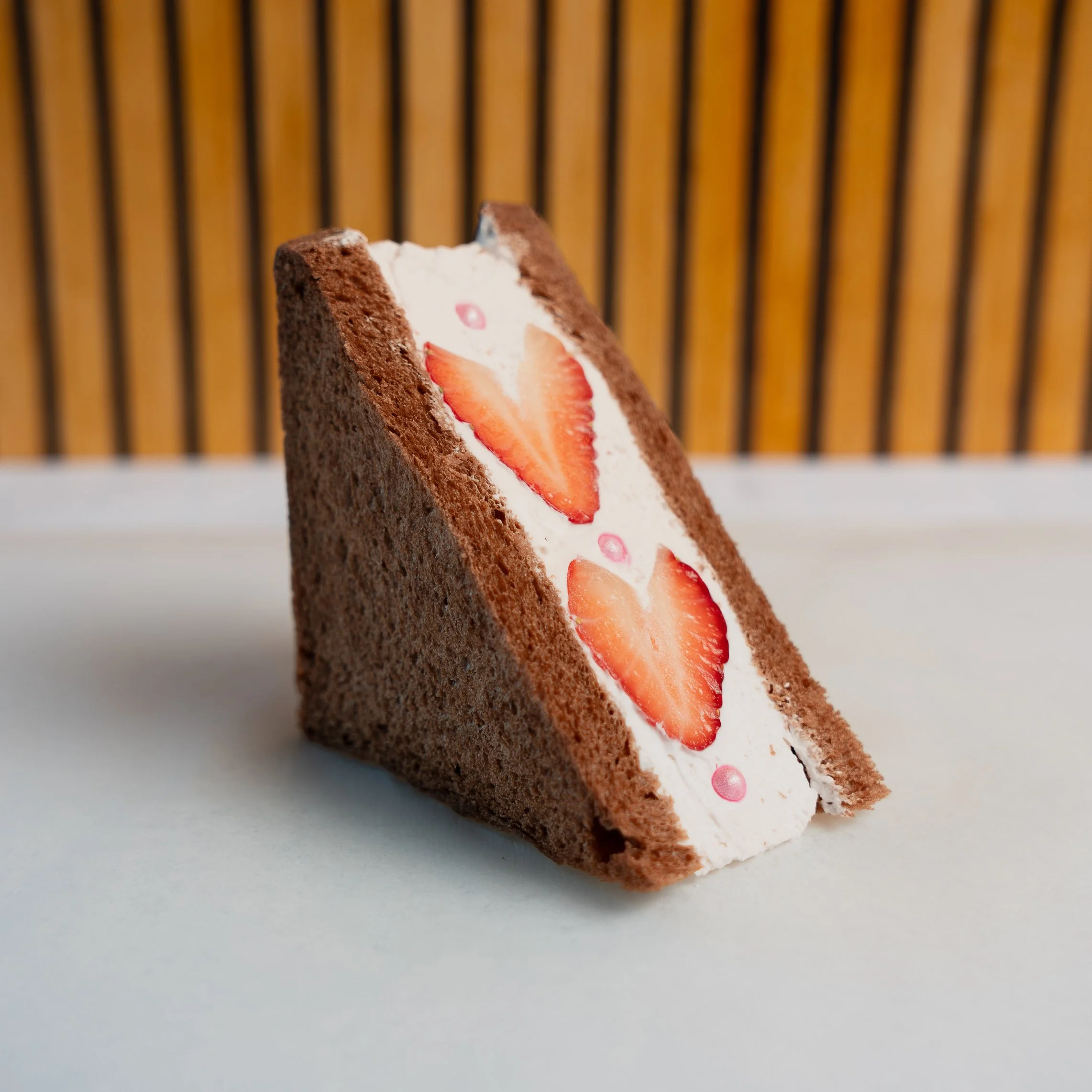 Valentine's exclusive! Our beloved Heart sando has been upgraded for Valentine's. Signature Pullman Loaf has a Belgium chocolate mixed in creating a bitter sweet contrast that you can't enjoy on the original. Perfect gift to expressing your love to your loved ones.