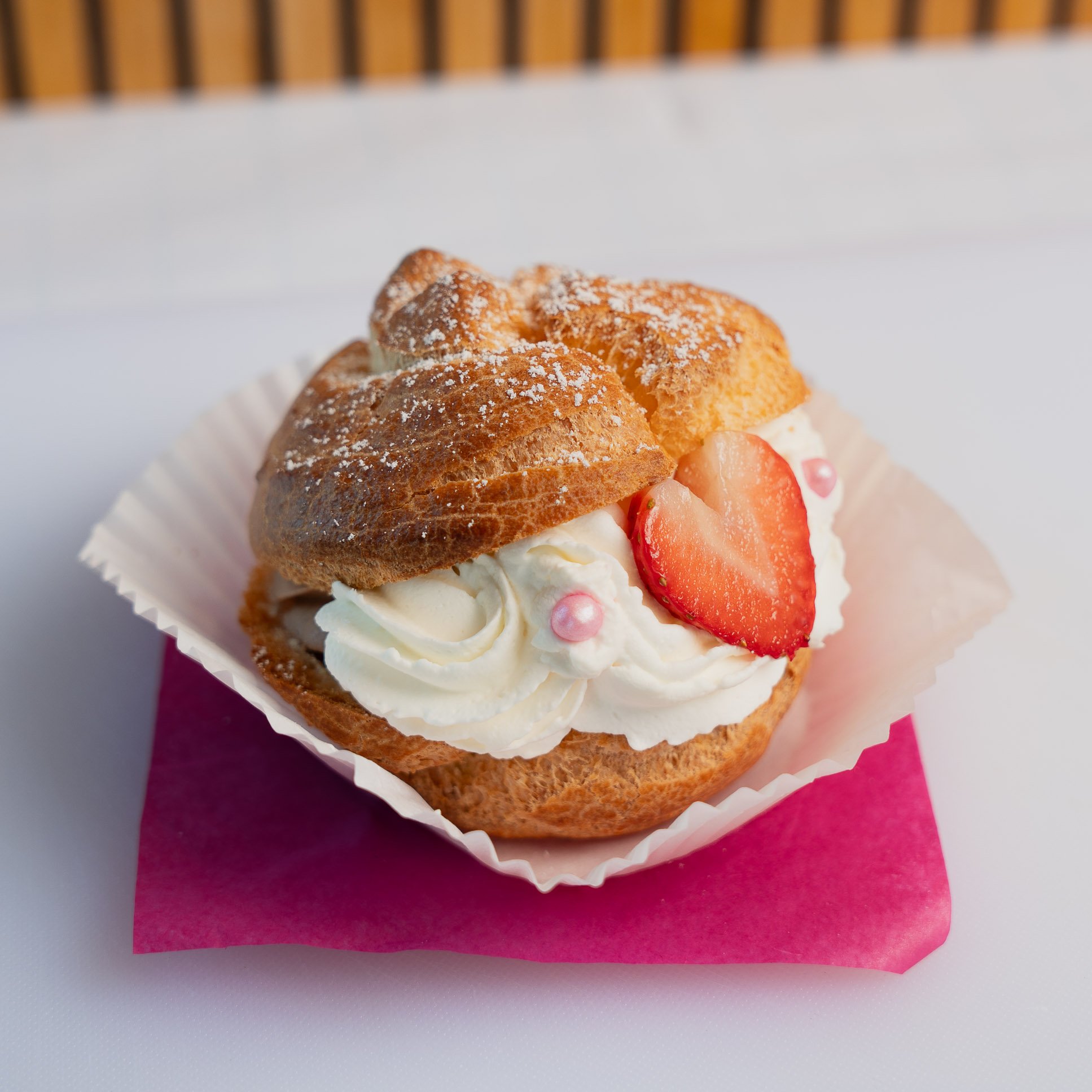 Valentine's exclusive! Our beloved Jumbo cream puff has been elevated with a chocolate custard filling, and decorated with whipped cream and a heart shaped strawberry. A lovely gift to to express your love to your loved ones.